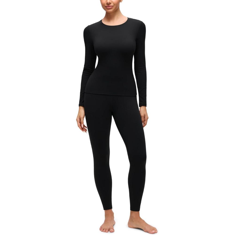 CRZ YOGA Softembrace Fleece Lined Thermal Underwear Set for Women – Soft Casual Base Layer Long Johns Warm Pajamas Top Bottom(Black)