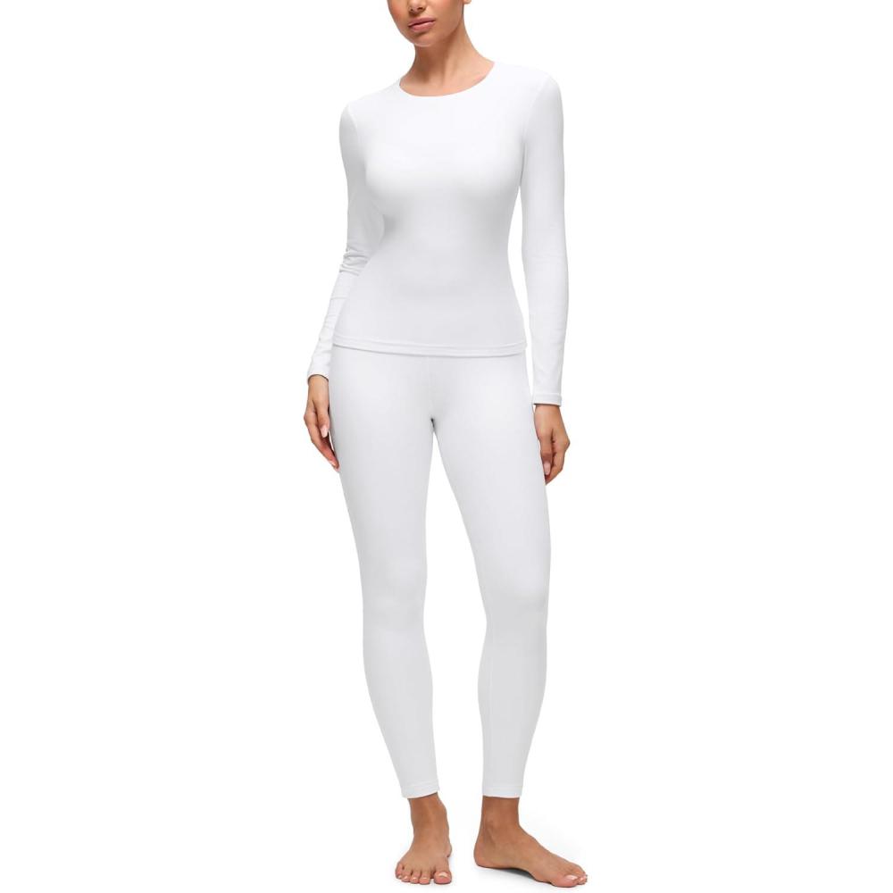 CRZ YOGA Softembrace Fleece Lined Thermal Underwear Set for Women – Soft Casual Base Layer Long Johns Warm Pajamas Top Bottom(White)